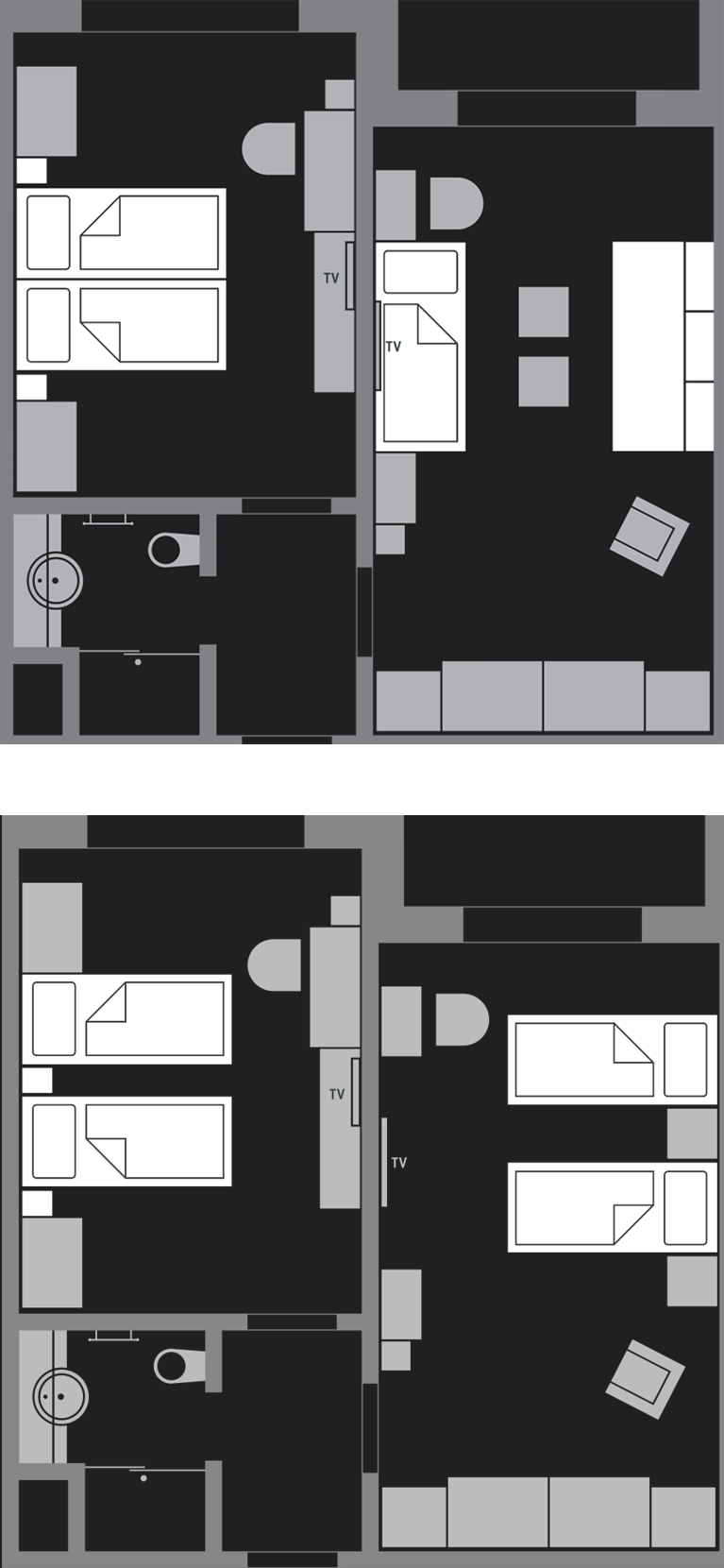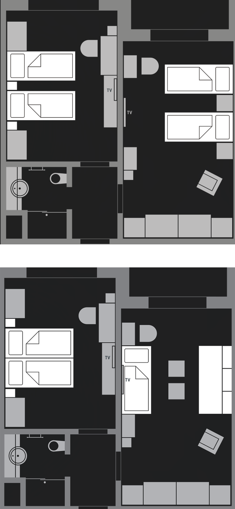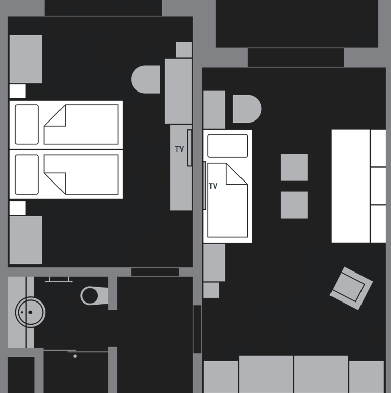 You’ll stay in spacious, athlete-friendly rooms (46 m²) designed for comfort and practicality, with plenty of storage for sports gear and personal belongings. Selected rooms accommodate up to 4 guests with four fixed beds (no extra beds needed), making them ideal for athletes travelling with family or teammates.